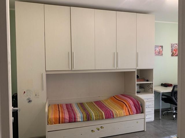 Dettagli del prodottoCameretta completa a ponte di 3 metri per 2,60 di altezza Colore olmo con secondo letto. Misure del prodotto