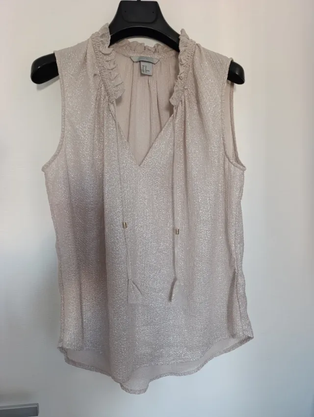 Elegante camicetta senza maniche con un tocco scintillante. Perfetta per aggiungere un po' di luce al tuo outfit.