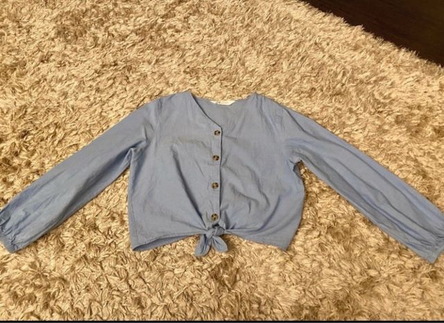 Camicetta H&M a maniche lunghe, perfetta per la primavera o l'estate. Il modello presenta un comodo nodo sul davanti e bottoni.