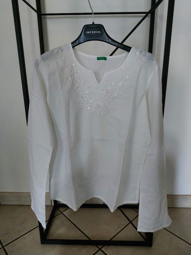 Camicia Benetton bianca con paillettes
