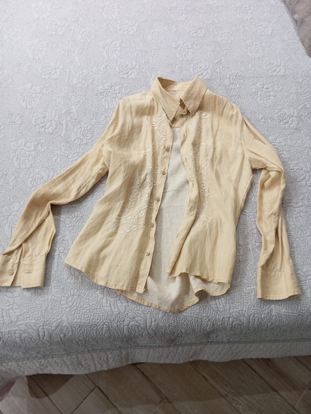 Camicia cotone misto lino ricamata