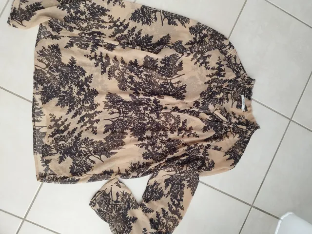 Camicia fantasia foglie beige/nera