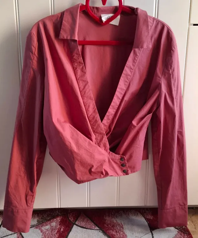 Camicia da donna con un design incrociato e un colletto a camicia colore bordeaux/mattone