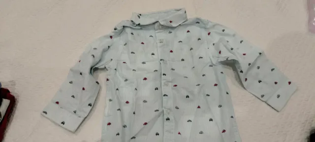 Camicia a maniche lunghe per neonato con fantasia di automobiline. - Fantasia con auto rosse e nere. - Colletto classico. - Chiusura con bottoni.