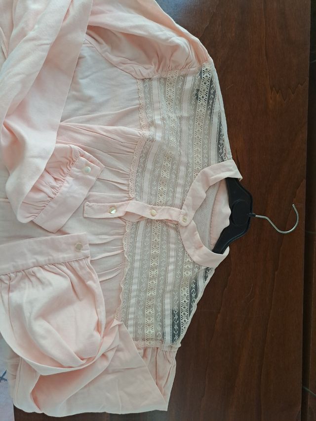 Camicia notte vintage cotone maniche lunghe pizzo