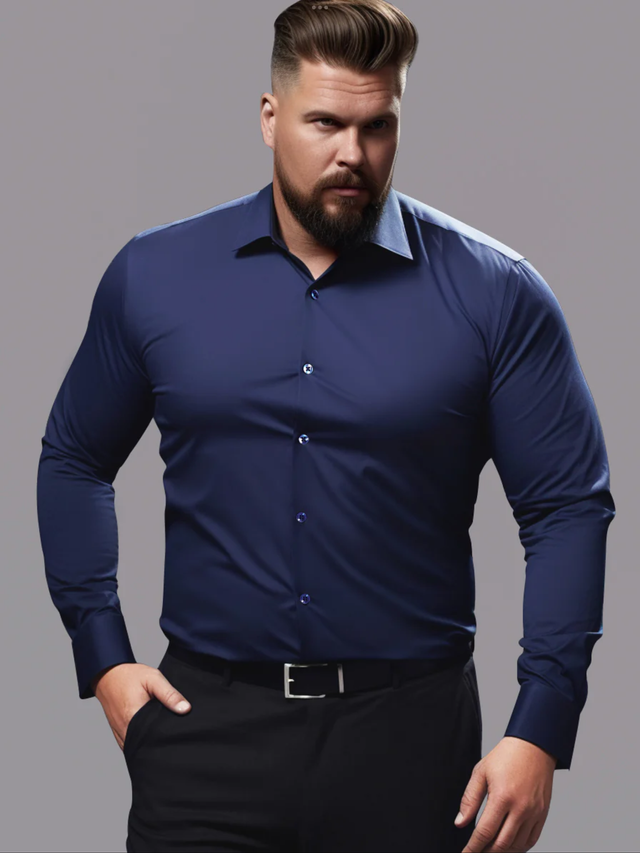 Camicia XXXL blu marino a manica lunga, tessuto elasticizzato
