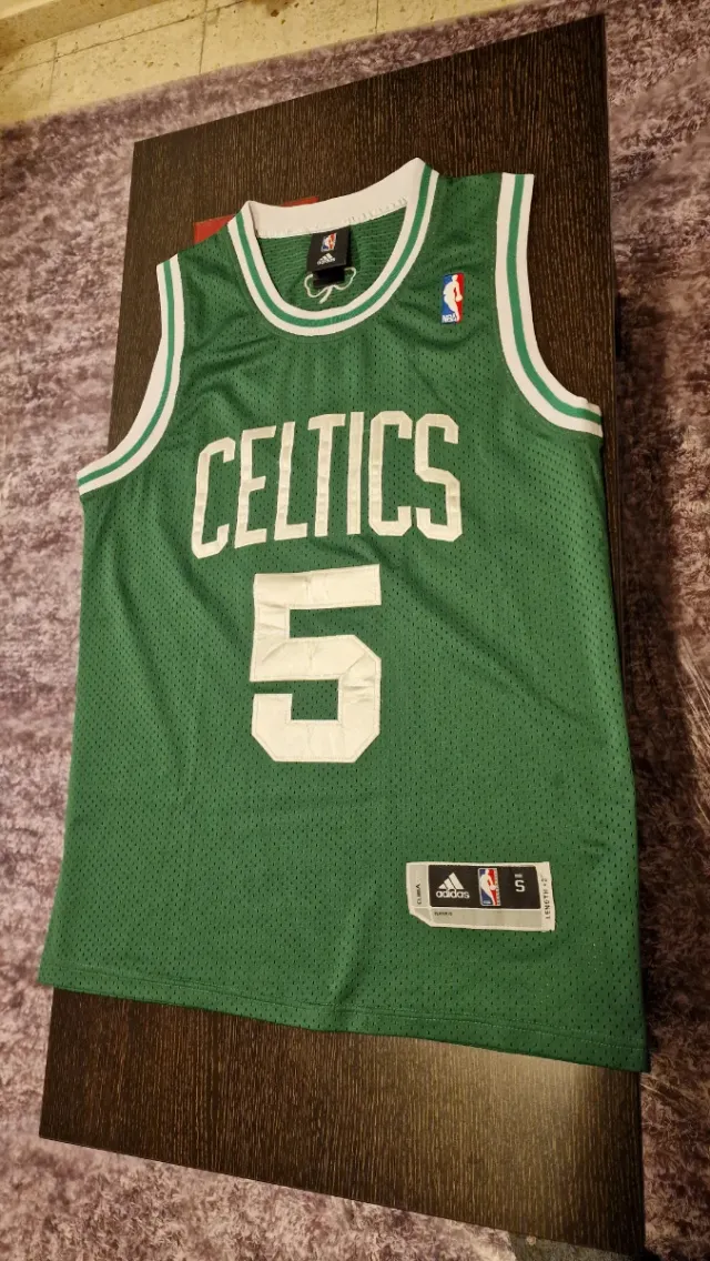 Dettagli del prodottoMaglietta da basket verde dei Boston Celtics. - Marca Adidas. - Taglia S. - Design con il numero 5 e il nome della squadra. La descrizione è stata tradotta automaticamente.