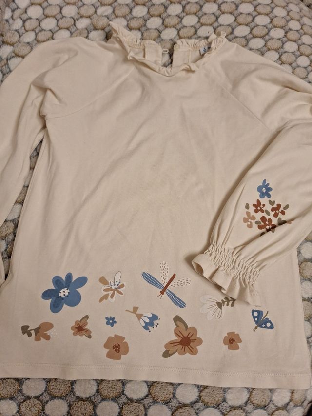 Dettagli del prodottoMaglietta a maniche lunghe per bambina con un bel motivo floreale e farfalle. Collo con volant. Polsini elastici. Design floreale sulla parte anteriore e sulle maniche. Taglia 8 Mayoral La descrizione è stata tradotta automaticamente.
