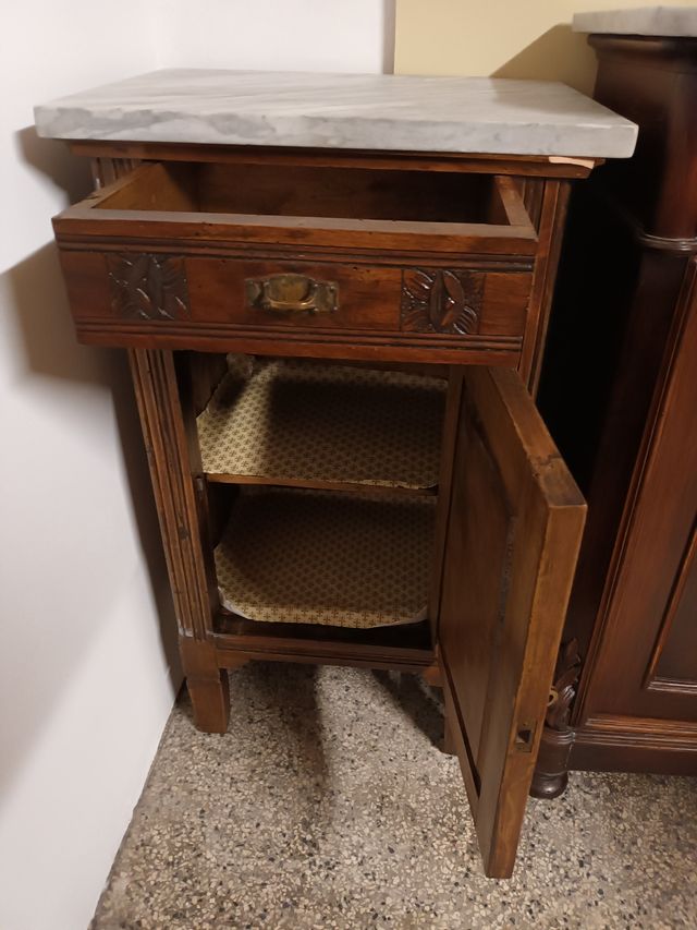 coppia di comodini da arredamento,sia in bagno che in cameretta. restaurati completi di loro marmi. periodo anni 49/50