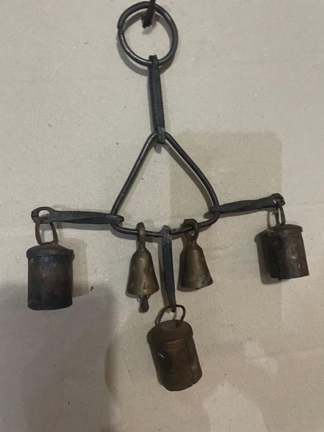 Dettagli del prodottoBellissimo set di 5 piccole campane in metallo, alcune con finiture in ottone. Sono invecchiate e mostrano segni del tempo, ma questo aggiunge al loro fascino rustico. Ideali per decorazioni o collezioni.