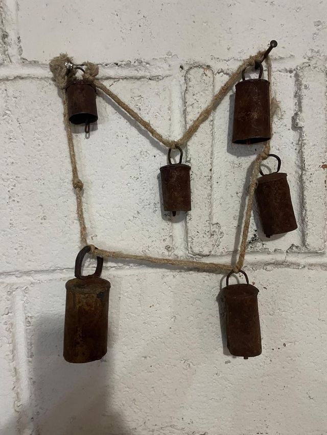 Dettagli del prodottoBellissime campane in metallo, stile vintage, perfette per decorare la tua casa o giardino. Sono sei in totale, legate insieme con uno spago. Mostrano un aspetto rustico e vissuto, con tracce di ruggine che aggiungono carattere. - 6 campane in metallo - Stile vintage - Aspetto rustico
