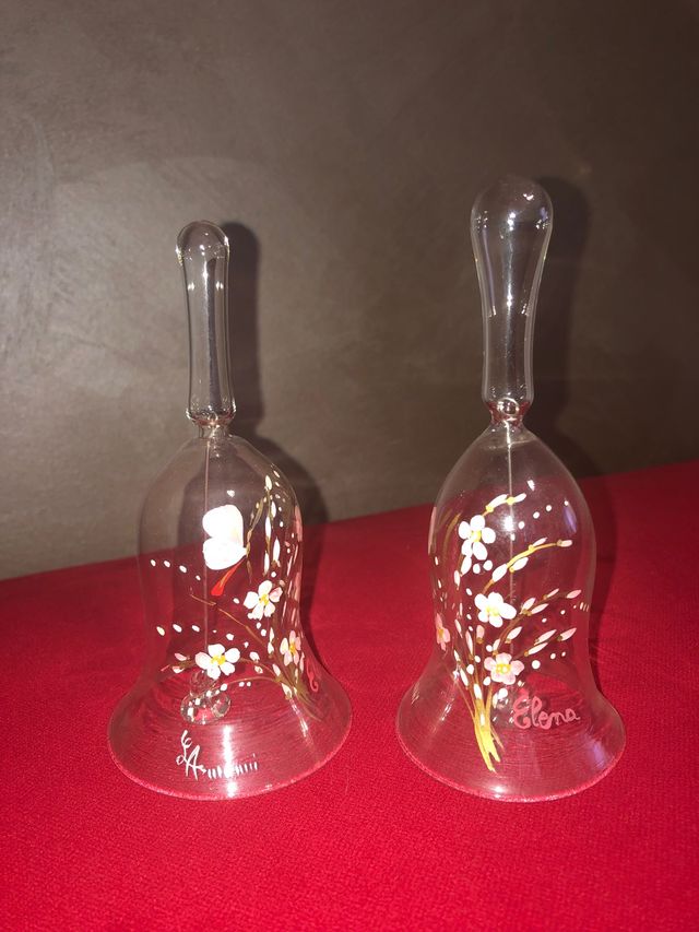 Dettagli del prodottoCampanelle in vetro con decorazione floreale in perfette condizioni Misure del prodotto