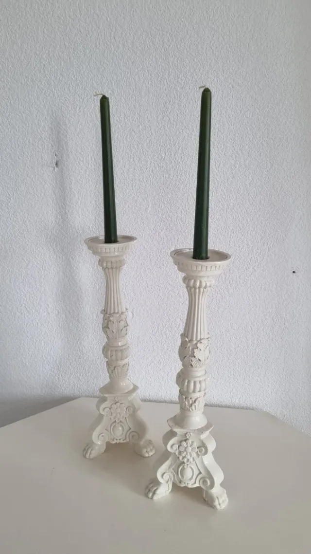 Candelabri bianchi con candele verdi