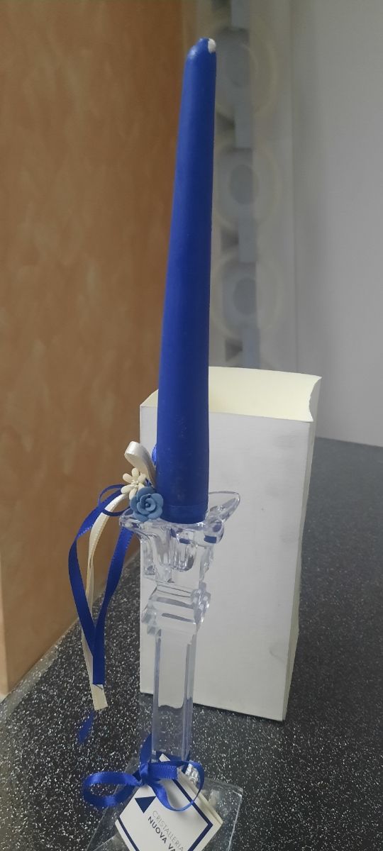 Candeliere in cristallo Cristalleria Nuova Vav. Nuovo, mai usato, dotato di candela blu e certificato di garanzia.