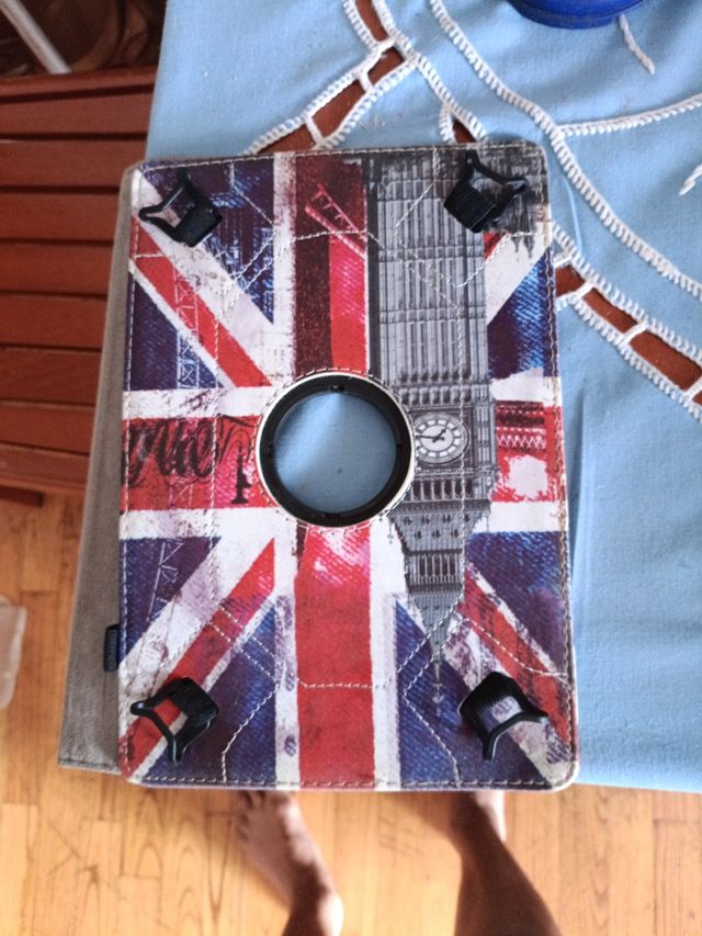 Dettagli del prodottocustodia presenta una stampa della bandiera britannica e un'immagine stilizzata del Big Ben.