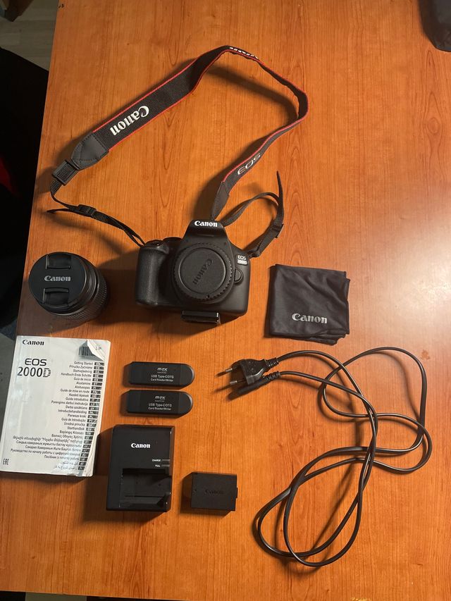 Dettagli del prodottoKit completo di fotocamera digitale Canon EOS 2000D, ideale per catturare i tuoi momenti. Include: corpo fotocamera Canon EOS 2000D, obiettivo Canon, tracolla, caricabatterie, batteria, lettore di schede USB, borsa di trasporto e treppiede con accessori. La descrizione è stata tradotta automaticamente.