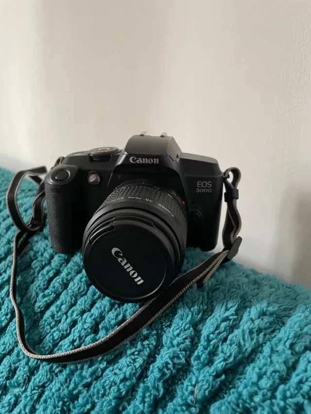 Dettagli del prodottoMacchina fotografica reflex Canon EOS 3000 con obiettivo.