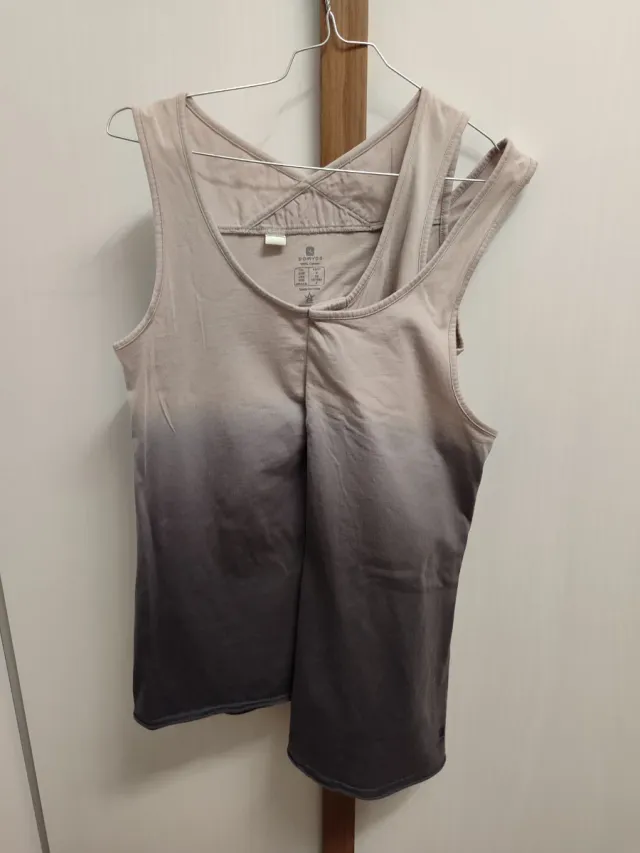 Dettagli del prodottoCanotta sportiva con un design a sfumatura che va dal beige al grigio scuro.
