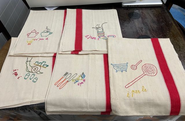 Dettagli del prodotto5 canovacci da cucina in cotone ricamati a mano. Nuovi, mai utilizzati. Vendibili anche singolarmente (3€ al pezzo) Misure del prodotto