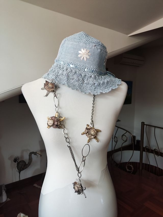 Usato poche volte romantico cappello donna azzurro. Ha una piccola macchia come si vede nelle foto