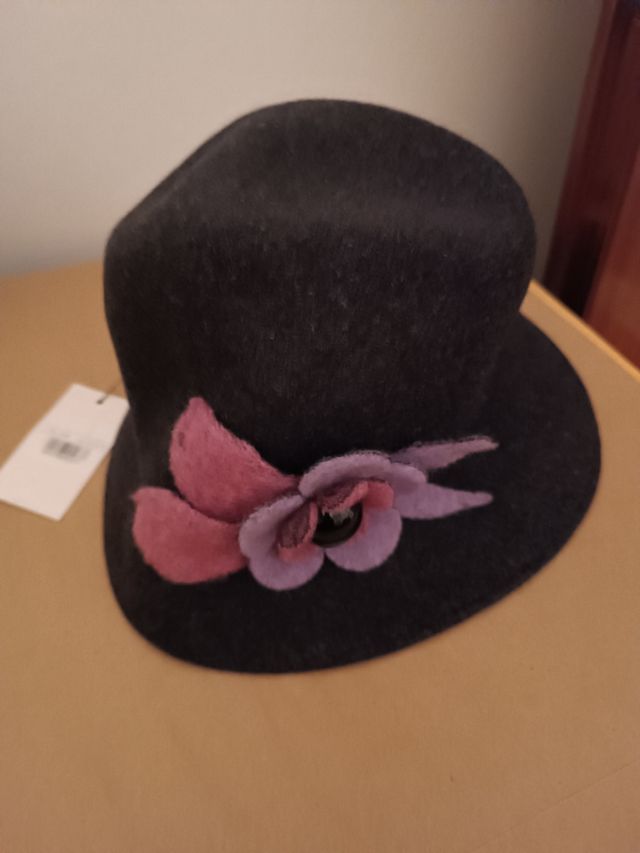 Cappello feltro nero fiore viola