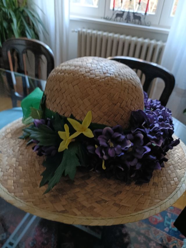 Fiori colorati viola e giallo, fiocco verde, mai usato
