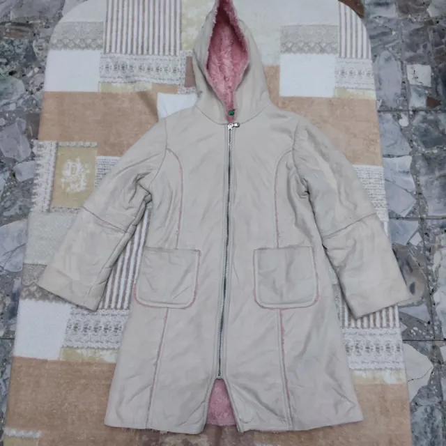 Cappotto lungo con cappuccio per bambina, foderato internamente in morbido tessuto rosa.