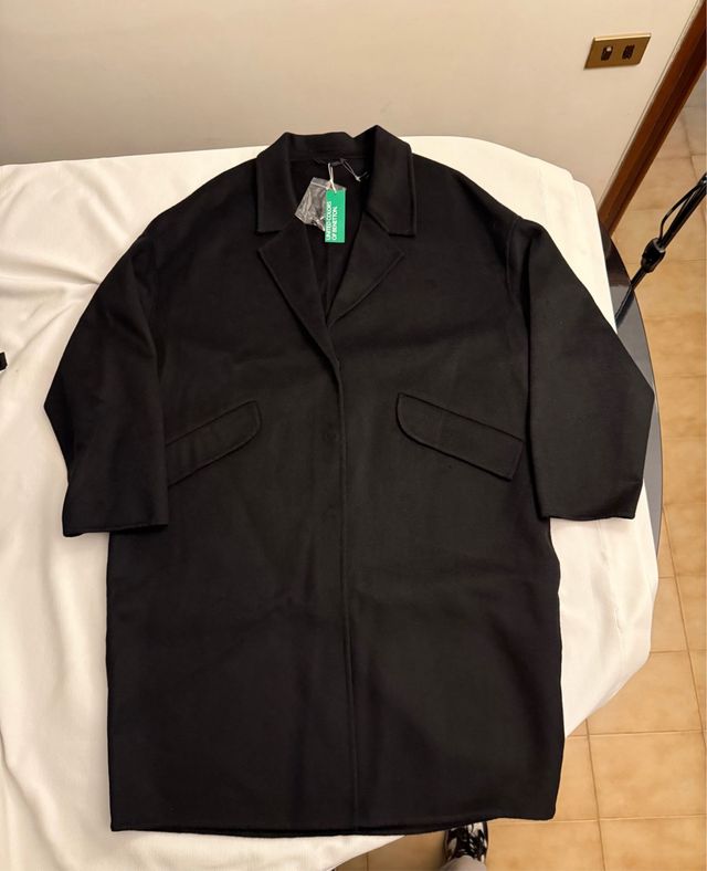 Cappotto Benetton Sfoderato Nero Taglia XL