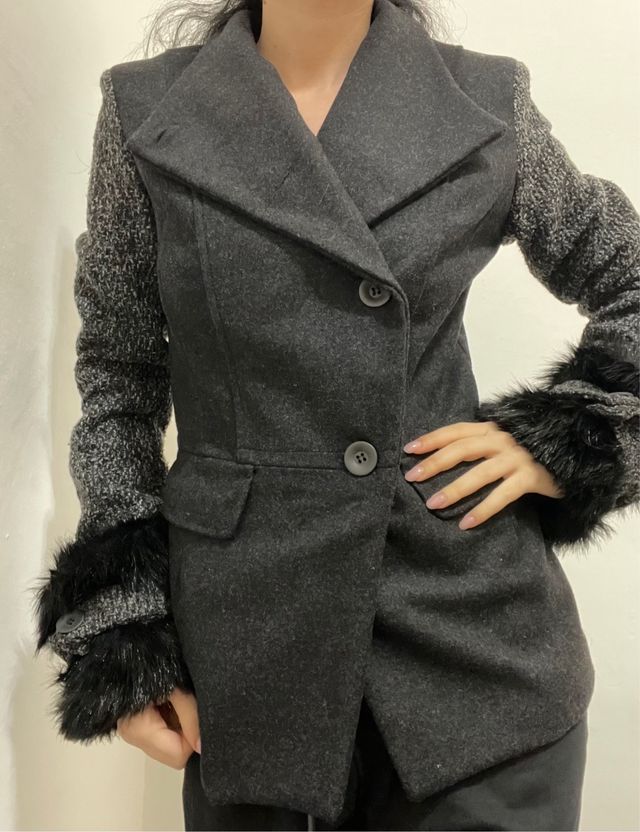 cappotto corto grigio con polsini in pelo