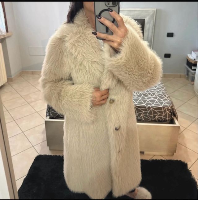 Cappotto eco pelliccia beige