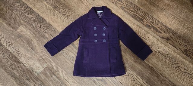 Dettagli del prodottoUsato in ottime condizioni. Cappotto invernale, tinta unita di colore viola melanzana, tg. 4 anni da bambina con chiusura a doppio petto, frontale, a bottoni, tasche frontali, bottoni decorativi sull'estremità di entrambe le maniche e scritta ricamata sulla spalla sinistra. Tessuto 53% lana e 47% viscosa mentre la fodera e l'imbottitura 100% poliestere.