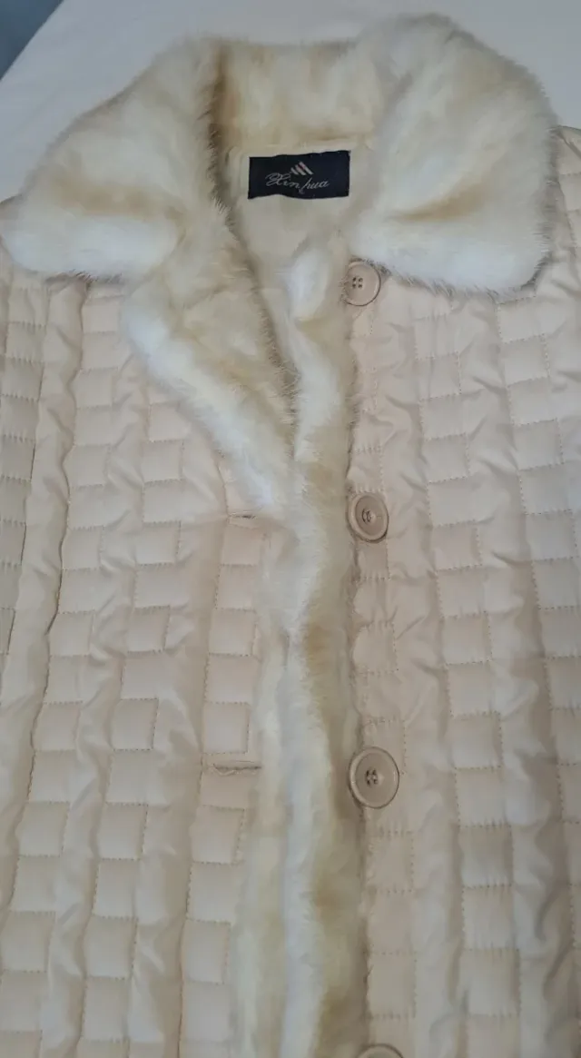 Cappotto lungo bianco panna con pelliccia