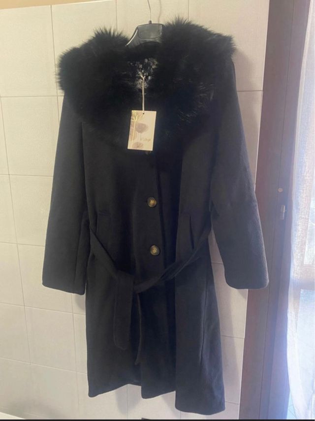 Cappotto nero con collo in pelliccia