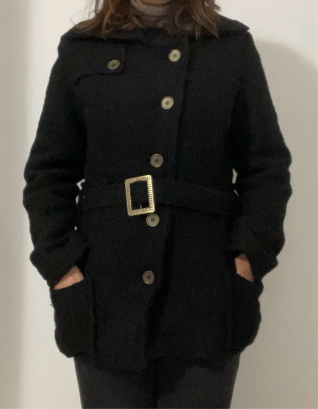 Dettagli del prodottocappotto donna nero in lana cotta.