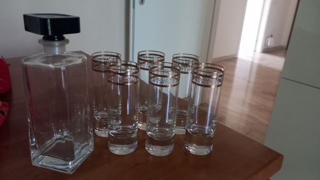 Caraffa e set 6 bicchieri cristallo di Bohemia