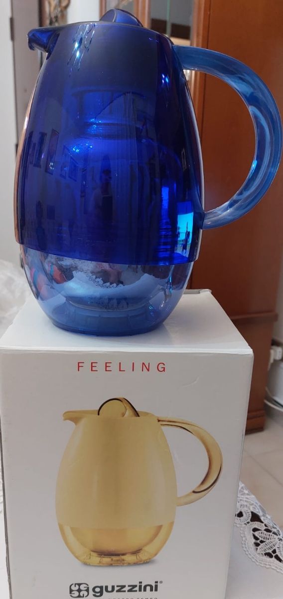 Caraffa termica in vetro blu Guzzini Feeling con capacità di 1L.