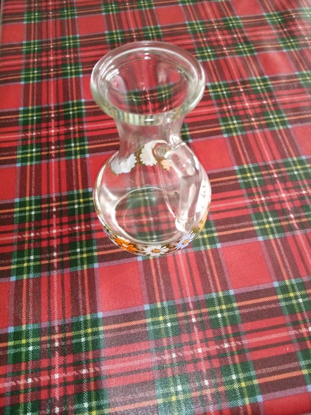 Dettagli del prodottoCaraffina in vetro vintage decorata con margherite multicolori. Misure del prodotto