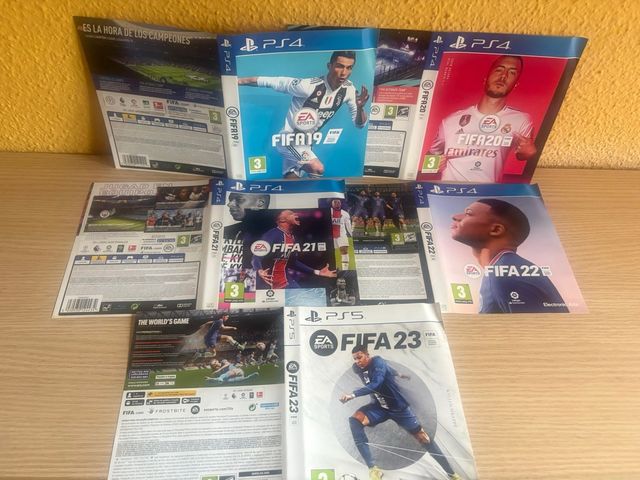 Dettagli del prodottoSet di copertine per i videogiochi della serie FIFA per PlayStation 4 e PlayStation 5. - FIFA 19 - FIFA 20 - FIFA 21 - FIFA 22 - FIFA 23 La descrizione è stata tradotta automaticamente.
