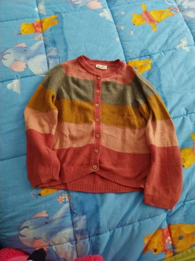 Cardigan colorato a maniche lunghe per bambina. - Taglia 116 cm. - Chiusura con bottoni. - Design a righe multicolore.