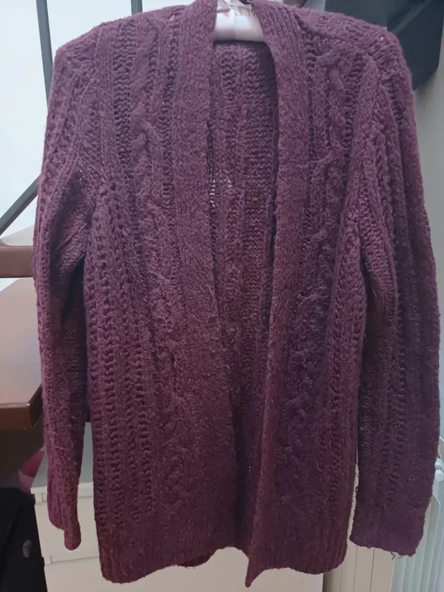 Cardigan bordeaux con trecce