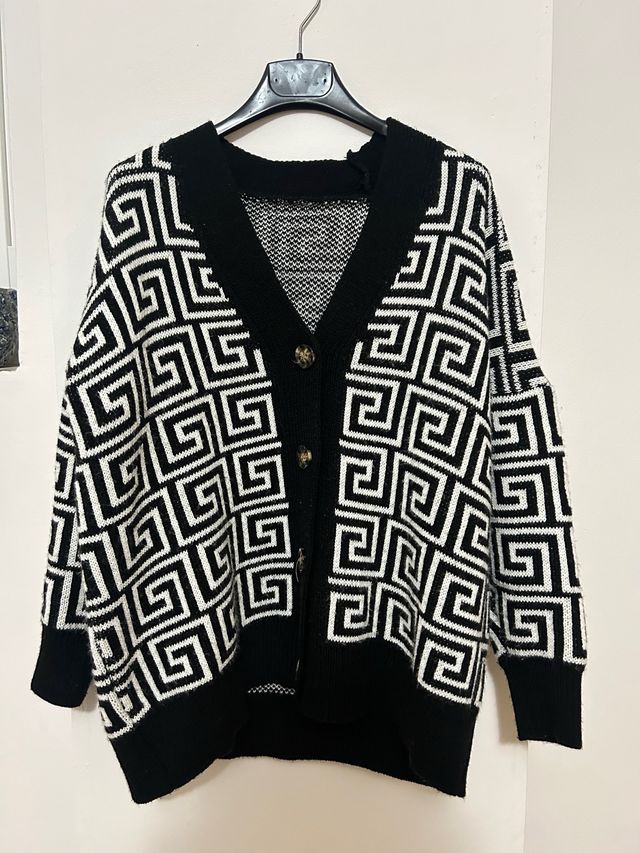 Cardigan geometrico nero e bianco