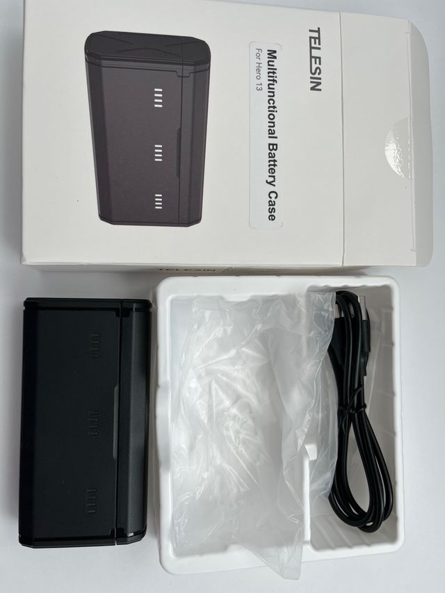 Dettagli del prodottoCaricabatterie multifunzionale per batterie GoPro Hero 13. Include un cavo di ricarica. L'ho usato una volta, ho venduto la GoPro mesi fa e ora metto in vendita gli accessori. Design compatto e portatile. Capacità di caricare fino a 3 batterie contemporaneamente. Indicatori LED per lo stato di carica. Telesin produce articoli di alta qualità compatibili con il settore delle action cam e i droni. La descrizione è stata tradotta automaticamente.