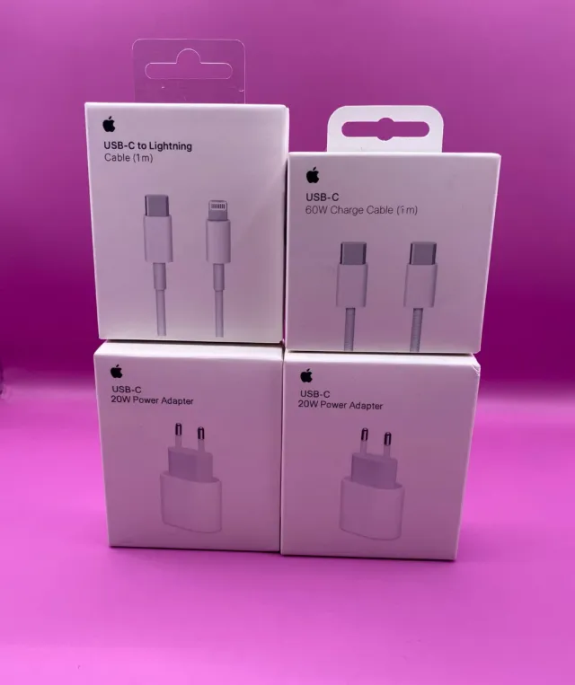 Dettagli del prodottoSet di accessori di ricarica per iPhone. - Due adattatori di corrente USB-C da 20W. - Un cavo USB-C a Lightning da 1 metro. - Un cavo di ricarica USB-C da 60W e 1 metro. La descrizione è stata tradotta automaticamente.