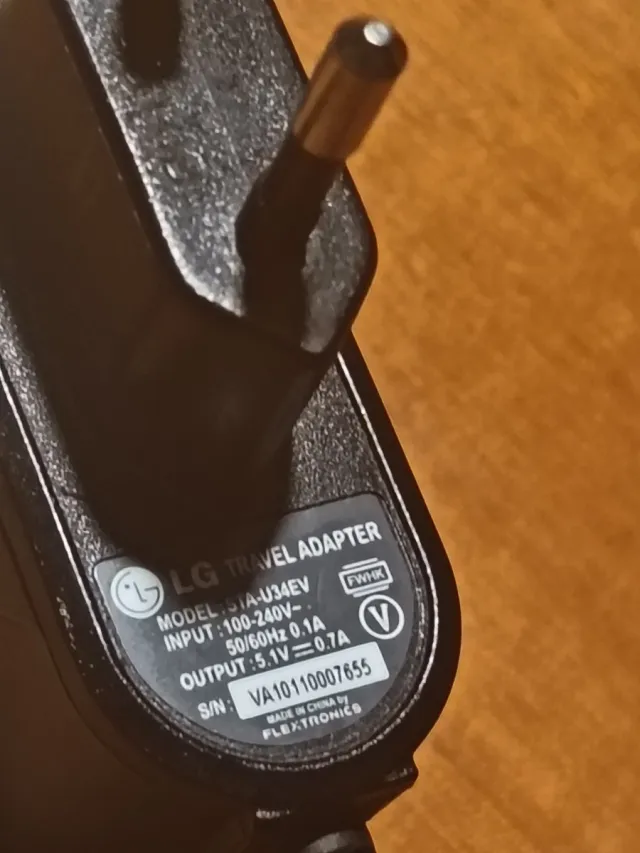 Dettagli del prodottoAdattatore da viaggio originale LG. Modello: STA-U34EV. Ingresso: 100-240V~ 50/60Hz 0.1A. Uscita: 5.1V 0.7A. N/S: VA10110007655. Prodotto in Cina da Flextronics. La descrizione è stata tradotta automaticamente.
