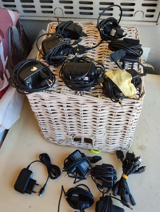 Dettagli del prodottoLotto di caricabatterie per cellulari più datati.