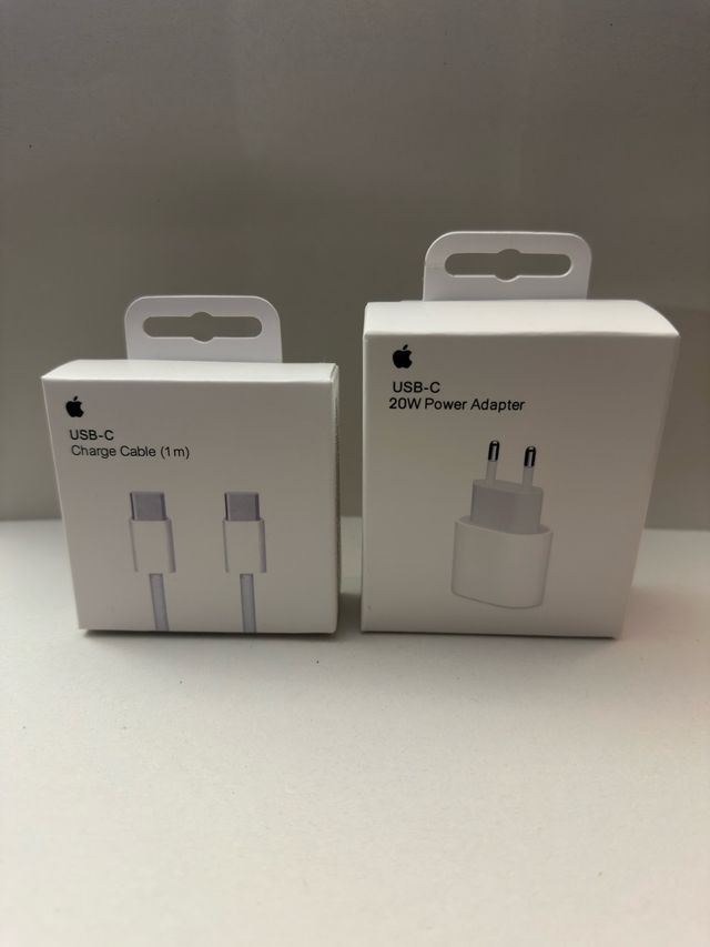 Kit caricatore e cavo USB-C Apple. - Adattatore di corrente USB-C da 20W. - Cavo USB-C (1m).
