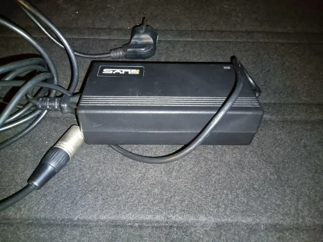 Dettagli del prodottoCaricatore SANS per bicicletta elettrica, con cavo di alimentazione e connettore.