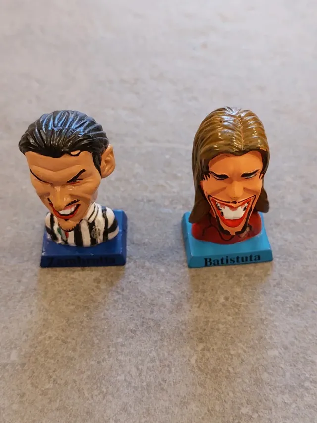 Due action figure Candy Goal 2002 - DOLCI PREZIOSI con caricature di calciatori. - Personaggio Zambrotta - Personaggio Batistuta