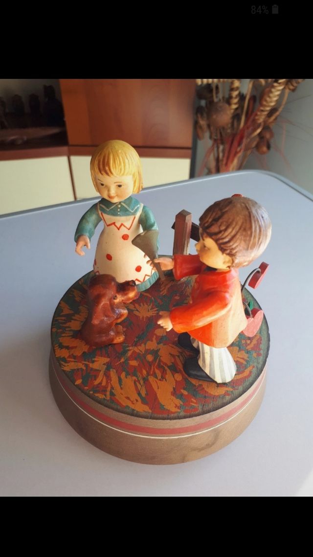 Carillon Anri in legno vintage innamorati con cane pezzo introvabile artigianale perfetto