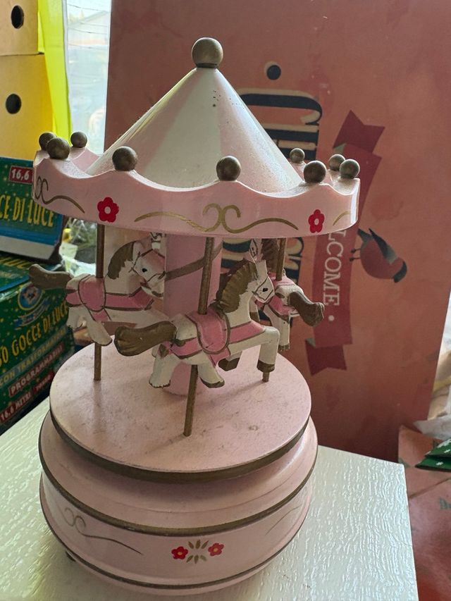 Carillon antico giostra cavalli rosa